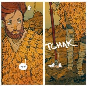 Es difícil no enamorarse de Shangri-La nada más coger el volumen que recién publica Tengu Ediciones. Magnífico cómic grueso (220 páginas) con lomo encuadernado en tela y cubierta majestuosa, con una excelente relación calidad-precio. Donde la obra de Mathieu Bablet hipnotiza incluso antes de ser abierta. La impresión de grandeza que transmite la portada ya atrapa. Y cuando lo abrimos, no nos decepcionamos…, cada página es una oportunidad para Mathieu Bablet de