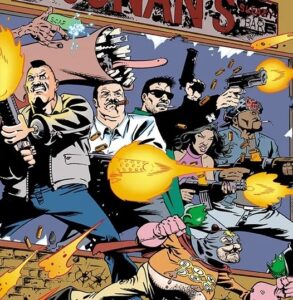 La mayoría de las historias siguen exactamente el mismo patrón. Hay dos o tres facciones diferentes involucradas y la situación se intensifica hasta una gran pelea o tiroteo, donde todos mueren excepto el protagonista y sus colegas. Y es divertido siempre. Y hay chistes verdes y violencia. Quizás puede ser el primer cómic donde empecé a notar que a Ennis le desagradaba mucho el pijameo mainstream y quería ensañarse con él. Pues Hitman representa a los superhéroes de forma muy negativa e incluso hay idea de querer hacer daño con otra alguno de esos estereotipos. O son estúpidos e incompetentes, crueles y violentos, o ambas cosas. ¿Es Hitman una precuela de lo que llegó después y que todo el mundo conoce hoy en día como The Boys? Podéis apostar a que sí.