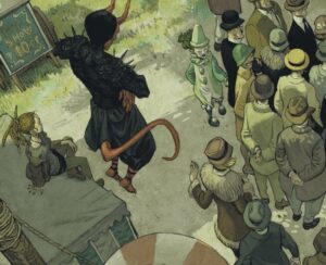 En este curioso álbum que nos trae Norma Editorial a librerías, si bien la ambientación y los personajes judíos en los albores de la Segunda Guerra Mundial podrían sugerir una fuerte presencia nazi y antisemita en la narrativa, la historia de Homs pronto abandona estos temas oscuros para adoptar un rumbo más faustiano, un diálogo entre el Diablo y la humanidad, con un alcance verdaderamente fantástico. Eso sin contar que hay alusiones directas a la película El Exorcista,
