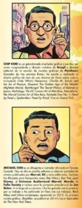 el Fantastic Four #10, donde el Dr. Doom irrumpe en la oficina de Stan Lee y Jack Kirby, o la idea de que existen Marvel Comics dentro del universo Marvel. Kidd y Cho dejaron que esta idea los guiara hacia una divertida tira de Möbius que se muestra en esta interesante novela gráfica en tapa dura que recién publica Panini Cómics en nuestro país. Donde el trasfondo es, ¿qué va en primer lugar: qué los creadores hagan que los héroes inspiren a los lectores a alcanzar sus metas o que los héroes inspiren a los creadores, que alguna vez fueron lectores, a convertirse en mejores personas? El caso es que los protagonistas, al enfrentarse a su existencia ficticia, se debilitan, preguntándose para qué sirve todo esto, y los dos creadores se horrorizan al ver lo que les han hecho pasar.