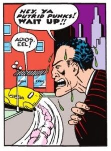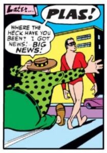 El debut y origen de Plastic Man ocurrió en la Police Comics #1 como os decía, un breve pero cautivador cómics de seis páginas donde ya se presenta al mafioso Eel O’Brian, quien recibe un disparo de un guardia durante un robo en una fábrica. Empapado en ácido y abandonado al instante y sin piedad por sus cómplices, Eel se escabulle y es encontrado por un monje que lo cura y le demuestra al