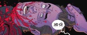 correcto. Y este es un comentario importante en una época en la que la alfabetización mediática a menudo parece, en el mejor de los casos, precaria. Creo que se aprecia en lo violento y depravado que ya es este nuevo arco argumental, y en cómo un poco (bueno, quizás mucha) hay más sangre y más creatividad extra que contribuye en gran medida a profundizar en la violencia como eje central de la historia. (Hay una decapitación con una sierra en las primeras páginas que os va a dejar el culo torcido).