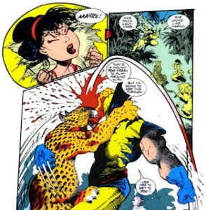 Una trama divertida pero menos coherente con Veneno, eso si. Es una parte divertida de la historia del personaje, pero había olvidado que gran parte de esta época Venom también se estaba desmoronando y sacrificando el personaje por la grandilocuencia. Y como os decía, otros cameos en el cómic incluyen a Elektra y Stick de la serie de Daredevil, que son excelentes incorporaciones, ya que ambos ayudan a Logan con sus problemas también. Y es que yendo a lo bueno, Garras y Fauces, en realidad, y pese a lo contado antes, es una lectura entretenida sobre Logan. Con un un arco argumental creado por Howard Mackie para la ocasión y varios artistas muy talentosos en el contenido incluyendo entre ellos al señor Sam Kieth (recientemente