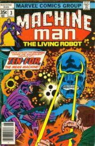 Por eso, estos títulos son joyitas en sí mismos. Tesoros. Machine Man (también conocido como Aaron Stack, Mister Machine y número de serie Z2P45-9-X-51 o X-51 para abreviar) es un superhéroe androide, es un robot, el único superviviente de una serie, criado como el hijo humano del científico Abel Stack, quien murió al quitarle su mecanismo de autodestrucción, y que posteriormente evolucionó a la consciencia por medio de un Monolito. Una máquina militar con alma, una computadora pensante con forma de hombre: X-51 es el Hombre Máquina. Abel Stack le dio rostro humano a un robot creado por el gobierno, nutriendo al hombre dentro de la máquina y llamándolo hijo. Pero la muerte de Stack dejó a ese hijo, Aaron, solo y huyendo por su vida.
