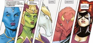Los dibujos de Ariel Olivetti…, distan mucho de sus antiguas ilustraciones en tonos pastel; aquí es una especie de Aaron Kuder más suave y menos estilizado, con colores más apagados (aunque eso no es necesariamente malo, hablando en comparación) y trazos de lápiz más definidos. Es sorprendente. Fue un cambio tan radical que tuve que volver al principio para comprobar quién era el dibujante una y otra vez. Ya no hay dibujos por ordenador a su nombre. Por eso espero que esto signifique el regreso de Olivetti a los cómics, a los trazos convencionales, porque esta miniserie es la prueba de que saber hacerlo bien.