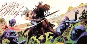 Como os decía, The Witcher: Corvo Bianco es una miniserie de cómics de cinco partes que explora el viaje de Geralt hacia una vida más sencilla, centrada en el buen vino y la compañía. La serie fue escrita por Bartosz Sztybor e ilustrada por Corrado Mastantuono y se publicó en USA en mayo de 2024 y muestra a Geralt disfrutando de una vida tranquila con Yennefer hasta que se enfrenta a misteriosos adversarios. El estilo artístico destaca por su atmósfera envolvente, que combina texturas y sombras para crear una ambientación medieval, convirtiéndola en una obra sobresaliente dentro del cómic de herencias y venganzas. Pero yo diría que Corvo Bianco destaca por su profundidad emocional, con el anhelo de paz de Geralt y el